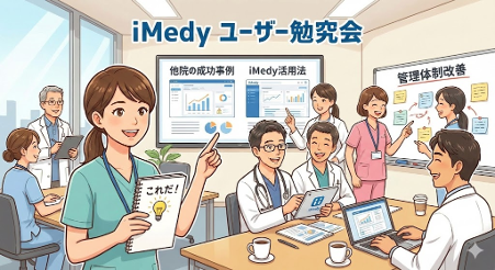 年に1度開催されるユーザー勉強会会では、他院の成功事例やiMedyの具体的な活用法を直接聞くことができます。 業務効率アップのヒントを見つることができます。