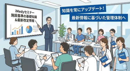 iMedy主催のセミナーで、施設基準の基礎知識から最新の改定情報までを定期的に学習。