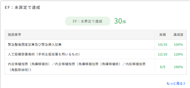 ●算定実績から新たな届出のヒントを発見 EFファイルのインポートで、算定しているものだけでなく、算定していない項目の実績値まで集計が可能に。この実績値を参考に、新たな施設基準の届出に向けたヒントを見つけられます。